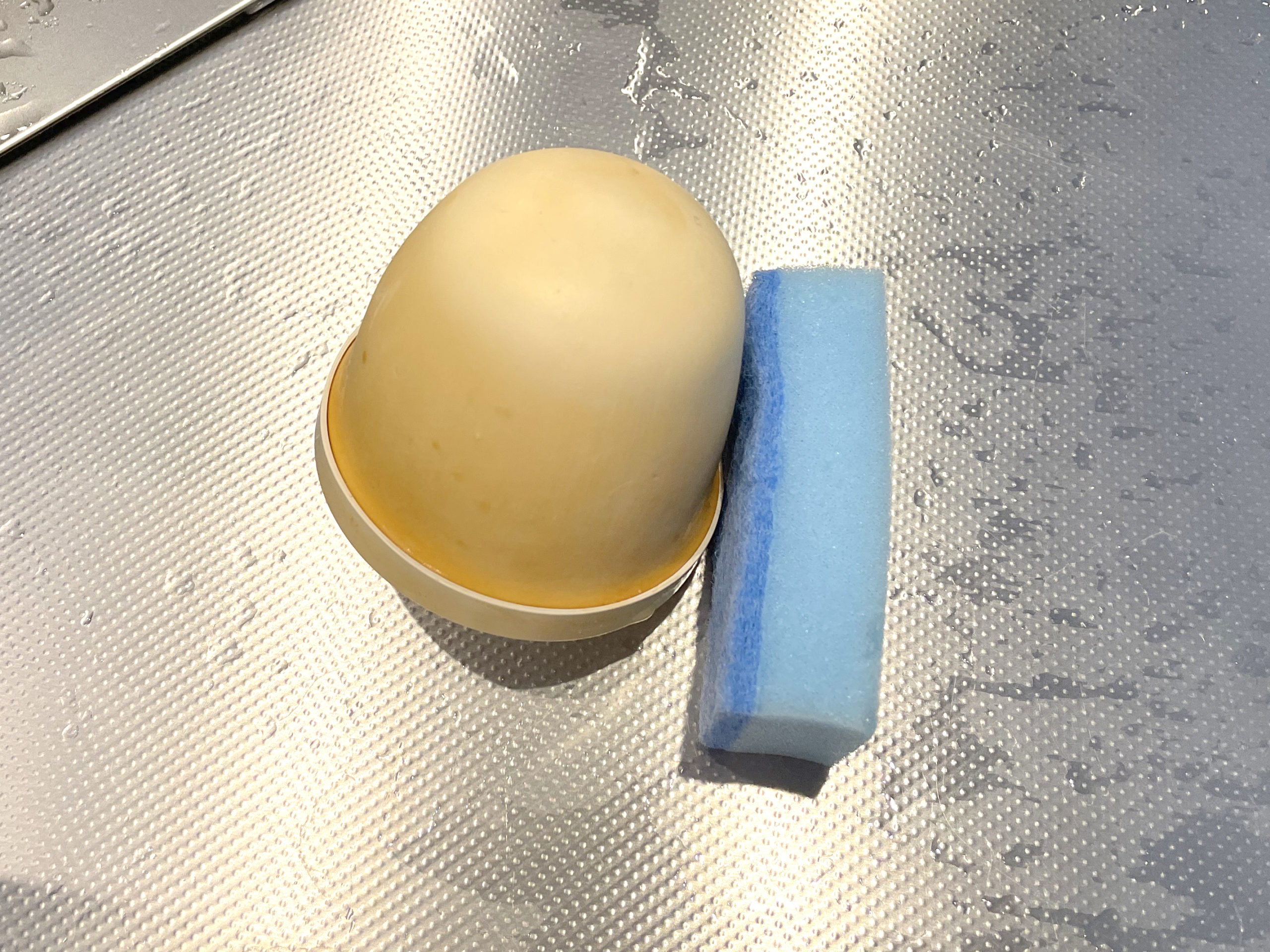 セラミックフィルターの表面をスポンジの硬い面で軽くこすって洗います。
